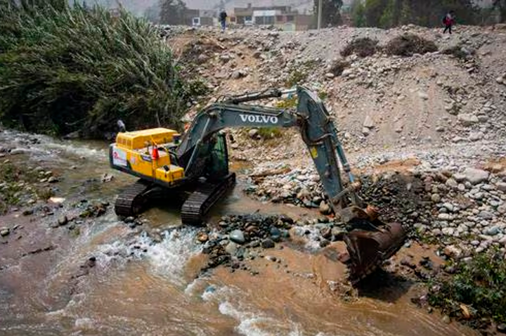 Supervisando las labores de descolmatación y limpieza en el Río Rímac en Chaclacayo, encontramos maquinaria sin usar.